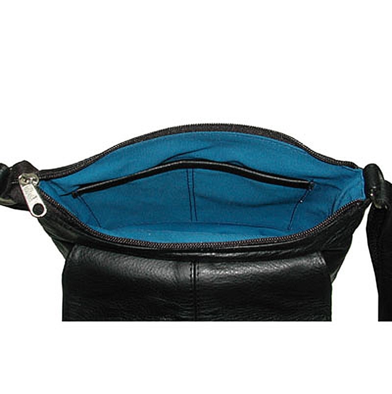 – Su solapa es un bolsillo cerrado con cremallera y dos colgantes en piel.